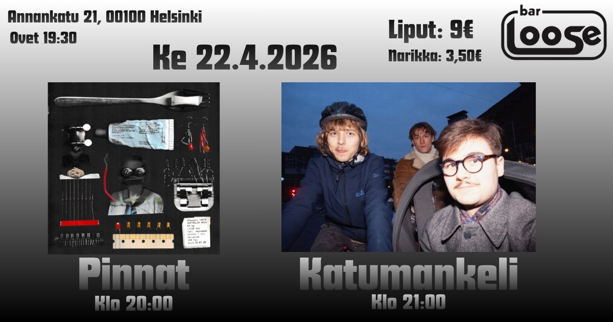 Illan aloittaa mahtava Pinnat, suoraan Helsingistä! Pinnat on julkaissut kaksi studio albumia. Nämä upeat albumit voivat löytää bandcampistä ( https://pinnat.bandcamp.com/ ). Pinnat saavat varmasti tunnelman kattoon heti kättelyssä. Kauan eläköön Pinnat! Illan […]