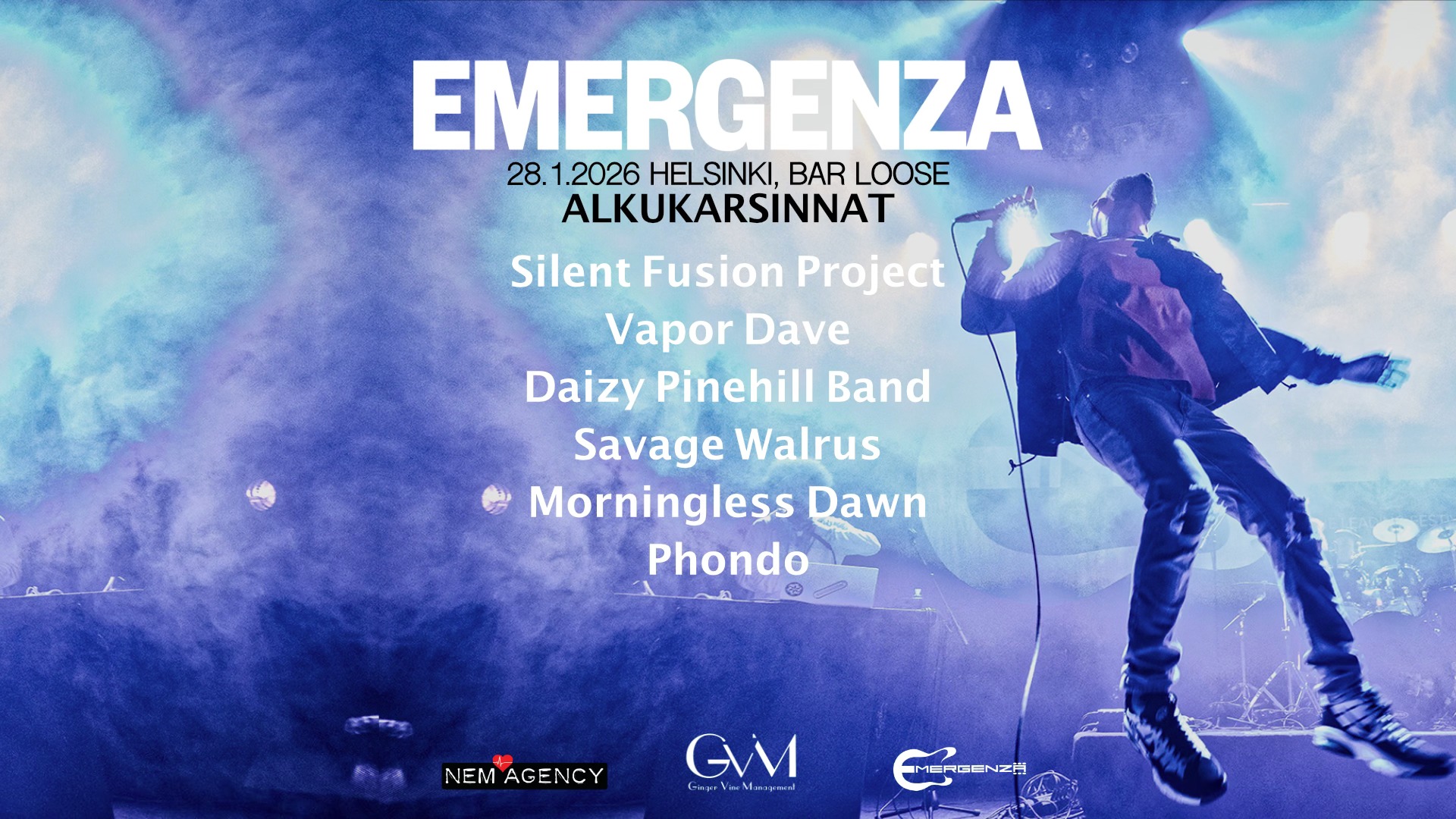 tammi 28 7:00 pm - 11:30 pm EMERGENZA FESTIVAL DAY 4: Silent Fusion Project, Vapor Dave, Daizy Pinehill Band, Savage Walrus, Morningless Dawn, Duo Roses 11€
