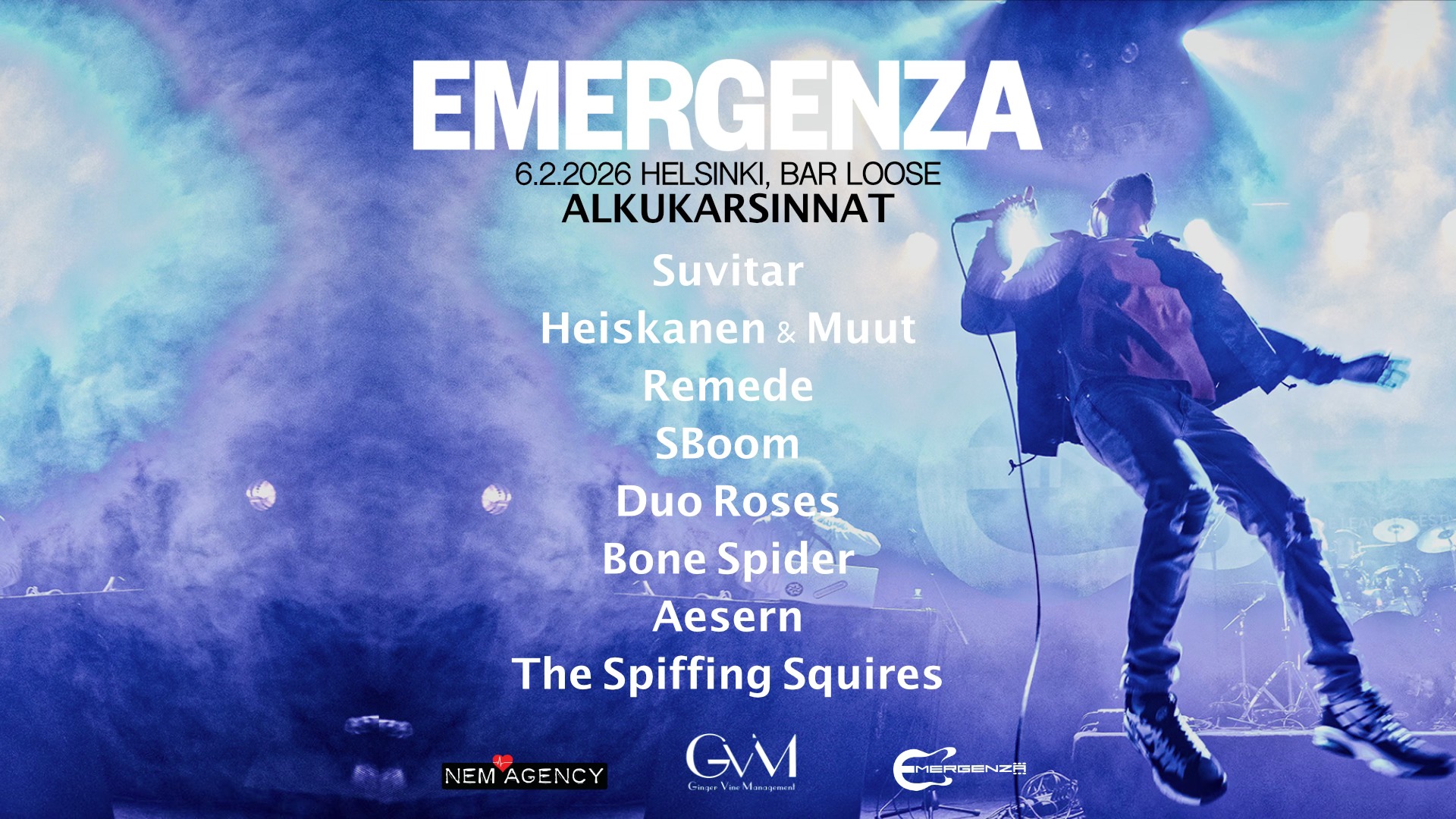 helmi 6 7:00 pm - 11:30 pm EMERGENZA FESTIVAL DAY 9: Suvitar, Heiskanen & Muut, Remede, SBoom, Duo Roses, Bone Spider, Aesern, The Spiffing Squires 11€