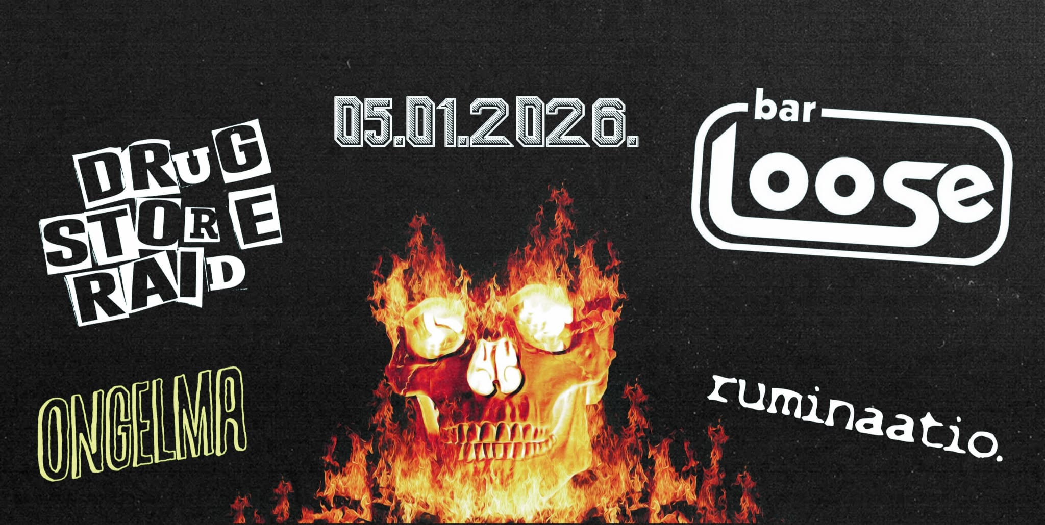 Loppiaisaatto Loosessa mielenkiintoisella kattauksella! Mukana katujen äänillä vahvistettu Ongelma, syksyllä yllätyspaluun tehnyt suomirock-yhtye Ruminaatio, sekä tuleva kulttibändi Drug Store Raid. 21.00 ONGELMA Ongelma on vuodesta 2014 asti keikkaillut kuopiolainen rock-yhtye, […]