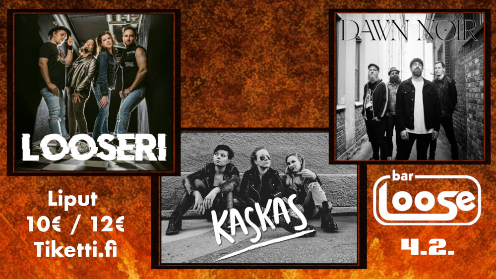 Tamperelainen Looseri karauttaa karavaaninsa isolle kirkolle ja Bar Looseen keskiviikkona 4.2.2026! Mukaan matkaan poimitaan Viialasta rokkitrio Kaskas, ja pääkaupunkiseudulta vieraita vastaanottamaan saapuu alt rock -yhtye Dawn Noir!